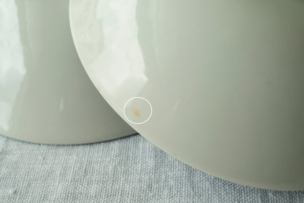 1956年から制作されていたカメオカラーシリーズは、流線形のフォルムと艶のある釉薬で仕上げられているのが特徴です。ブルームーンというカラーで、少しグレーがかった深い青緑色が今もなお、艶やかに美しく輝いています。