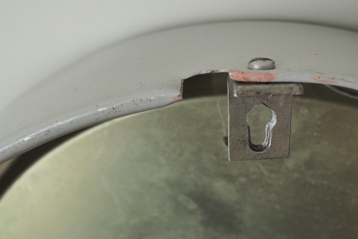こちらのウォールクロックは1940年代に製造されたもので、元々は背面にカバーが付いた電気式壁付け時計として使用されていたものかと思われます。インダストリアルデザインらしい視認性の高いシンプルで洗練されたフェイスとライトグレーの塗装が印象的な一台です。
