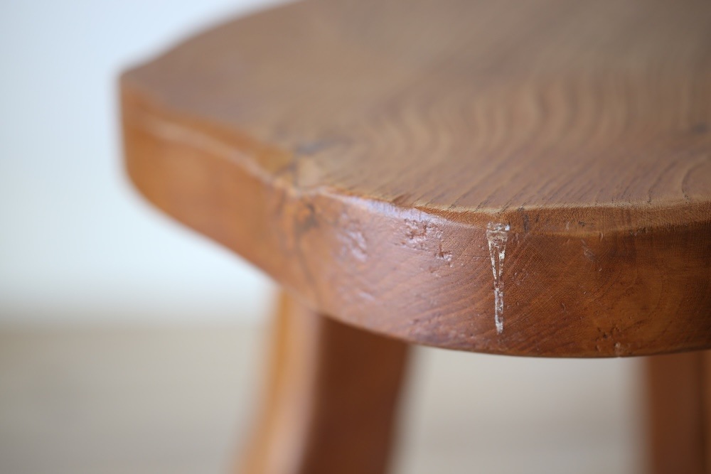 木材の形をそのまま生かして作られたような座面とラフに角を落とし、座面の形とリンクするような線を描く3本の脚が特徴的なロースツール。北欧のものにもアジアのものにも見えてくる無国籍なルックスで、どんな家具や空間にも馴染んでくれるフレンドリーな1脚です。