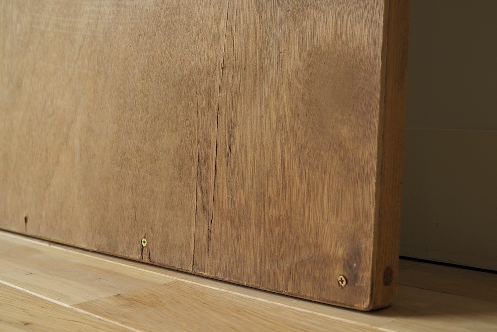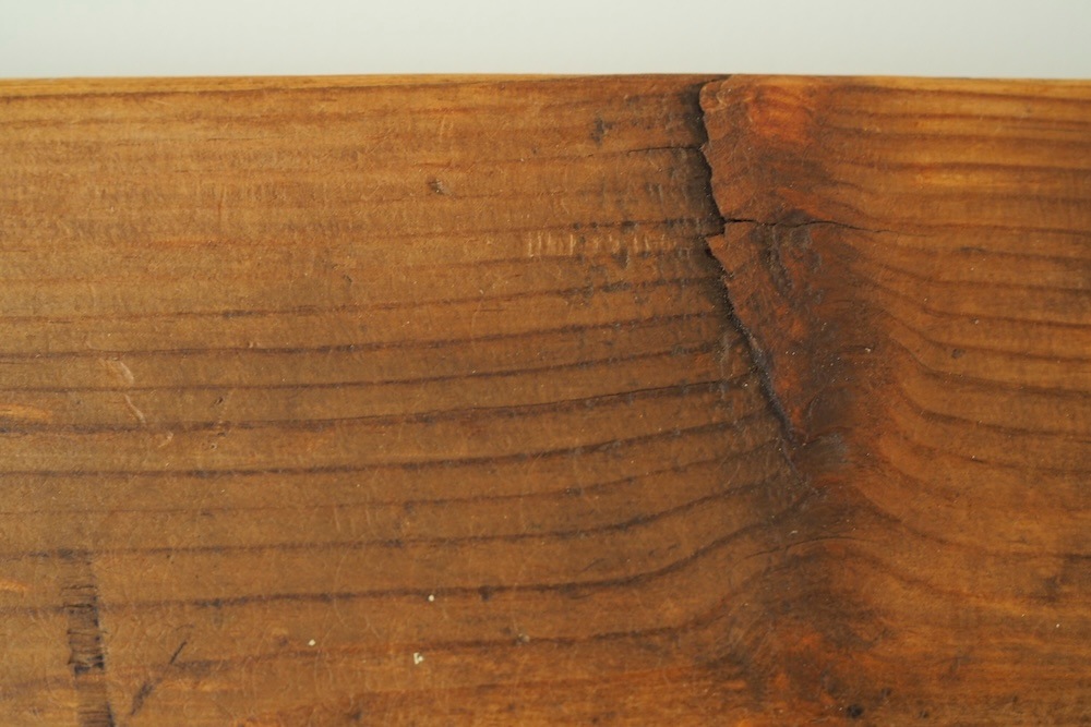 木部の割れやヒビに接着剤を注入した後、パテ埋めを行い着色して目立ちにくくします。経年変化による木の反りや収縮による割れの場合、修復が出来ないことがあります。