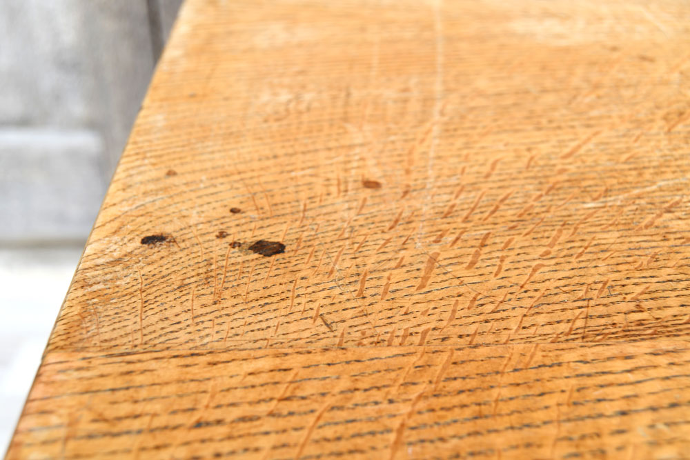 木部の割れやヒビに接着剤を注入した後、パテ埋めを行い着色して目立ちにくくします。経年変化による木の反りや収縮による割れの場合、修復が出来ないことがあります。