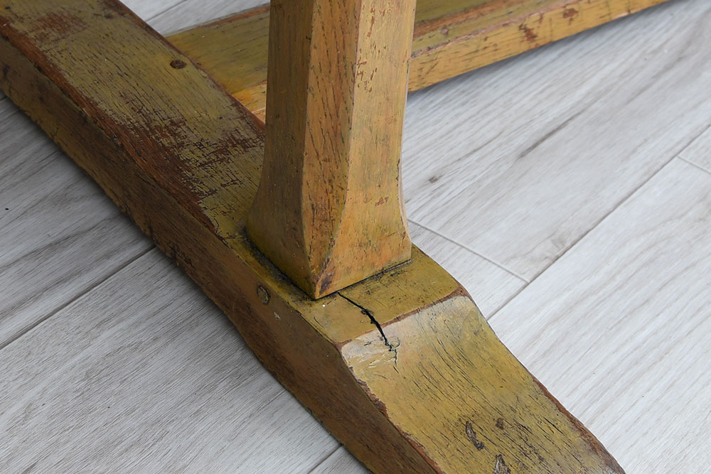 主にテーブルやチェアなど、脚部や各所パーツに緩みが生じているものは一度全て分解、接着剤等を注入し組み直しを行います。
